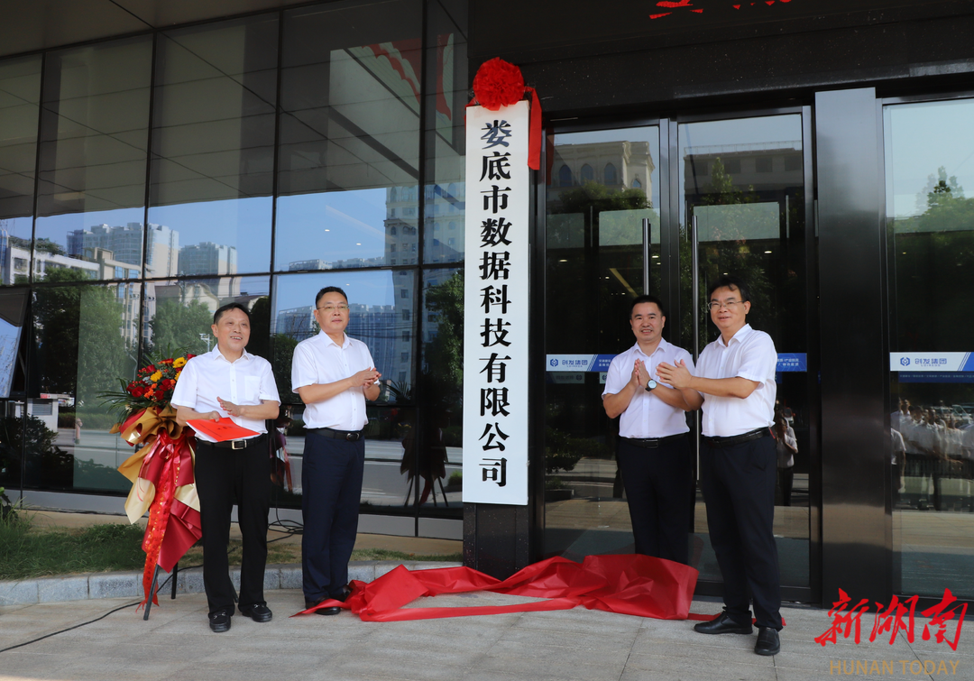 (蔡新亞、賀若紅、劉建、梁養(yǎng)賢共同為婁底市數(shù)據(jù)科技有限公司揭牌)